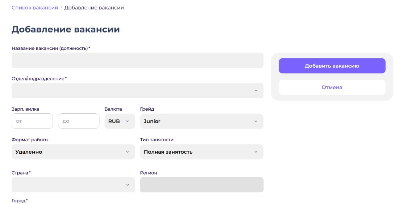 для команды подбора, где вы создаёте вакансии,